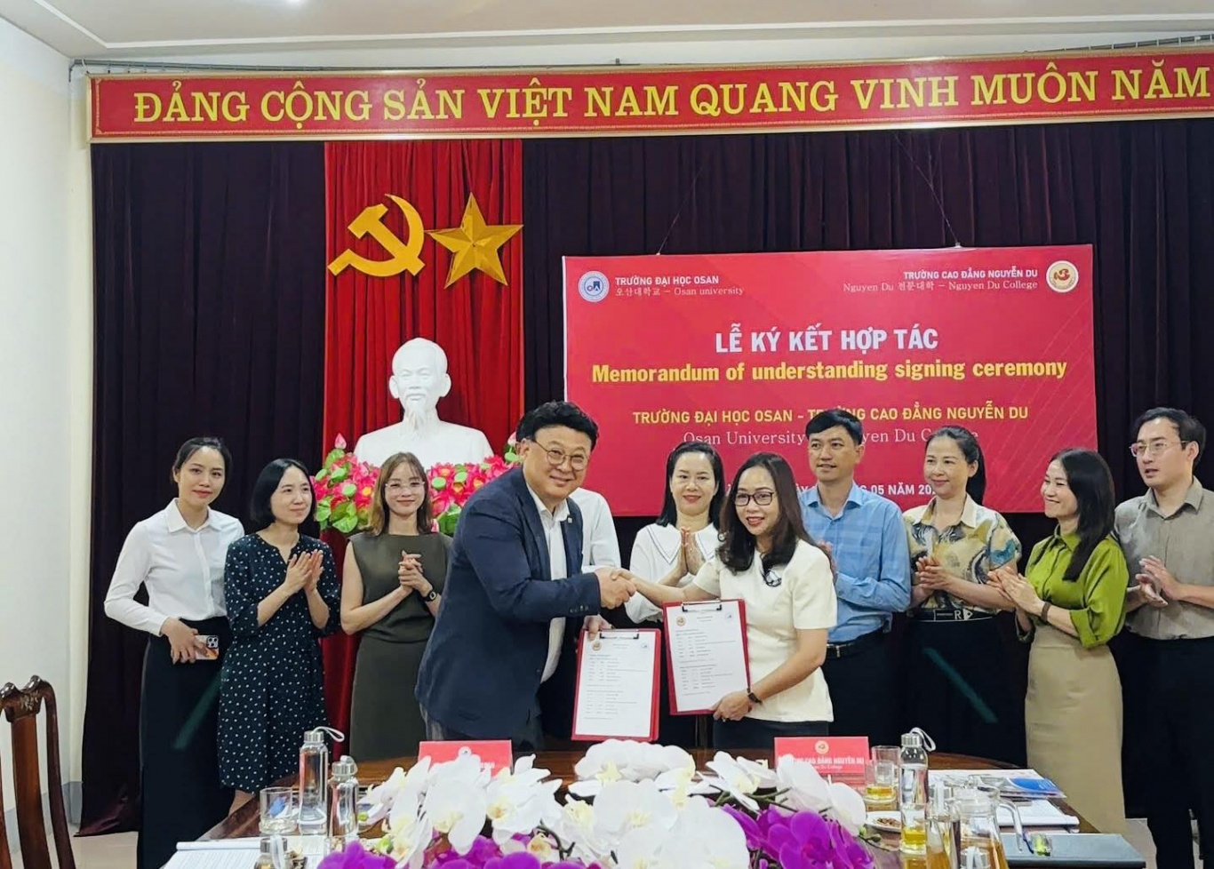 Chương trình hợp tác trao đổi sinh viên giữa Trường Cao đẳng Nguyễn Du và Trường Đại học Osan (Hàn Quốc) ngày 22/5/2025 là điểm nhấn quan trọng, mở ra cơ hội giao lưu, học tập và hội nhập quốc tế cho học sinh, sinh viên.